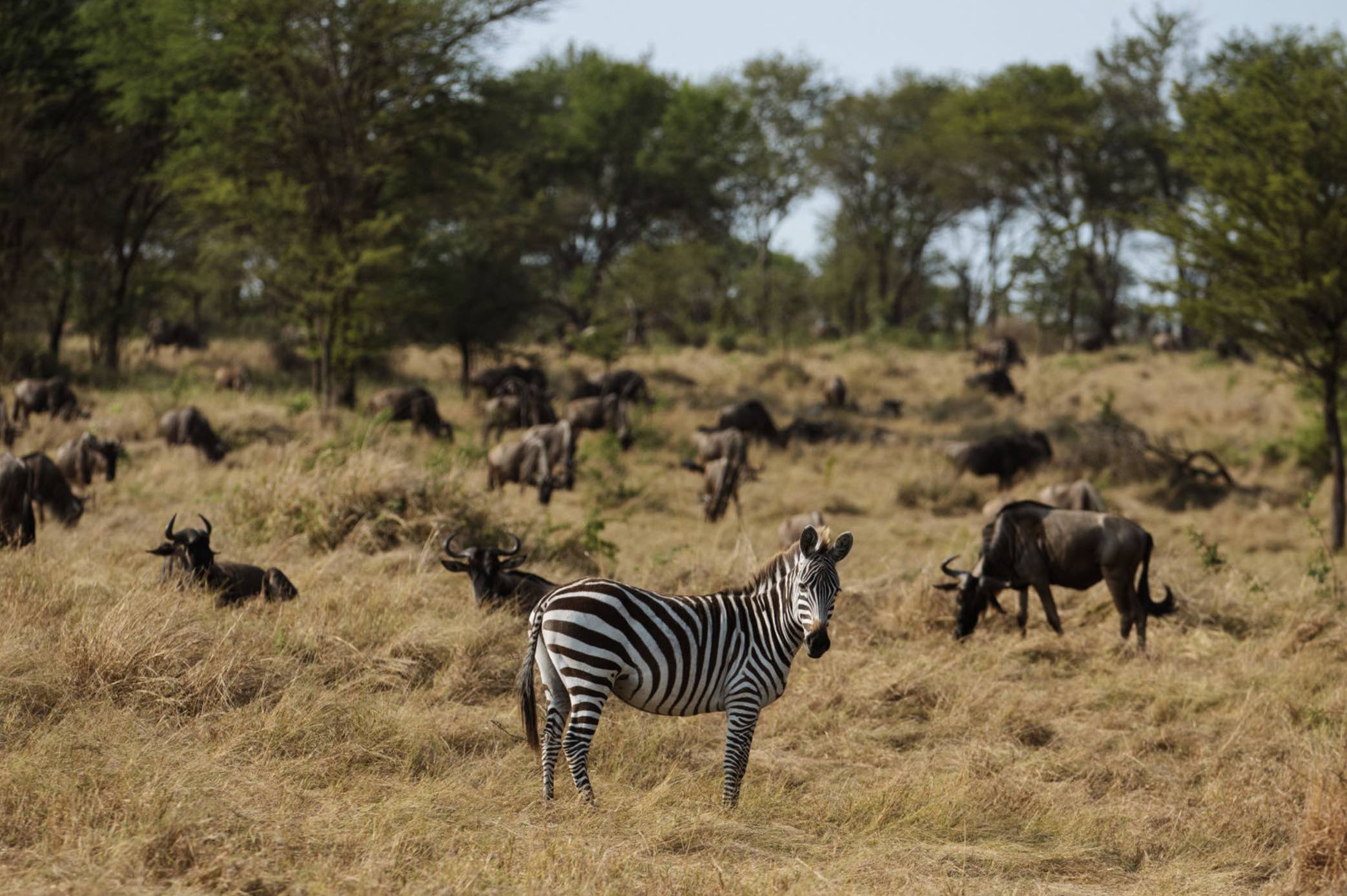 In the afternoon, set out on your first game drive. The Ndutu region, rich in both grasslands and woodlands, is the centre of the Great Migration during the calving season. Between December and March, thousands of wildebeest gather here to give birth, attracting predators such as lions, cheetahs, and hyenas. As the sun begins to set, the plains glow gold, and the evening air fills with the calls of wildlife.
